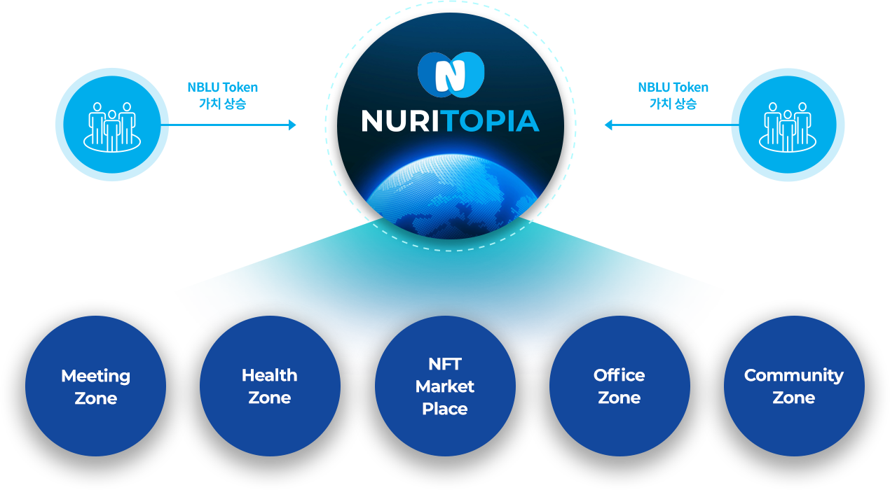 NURITOPIA의 기본 토큰은 NBLU이며 메타버스 생태계는 초기에 개인들의 만남, NFT 마켓플레이스, 건강 컨설팅, 커뮤니티 클럽 및 사무실 공간 등의 서비스를 제공할 것입니다.